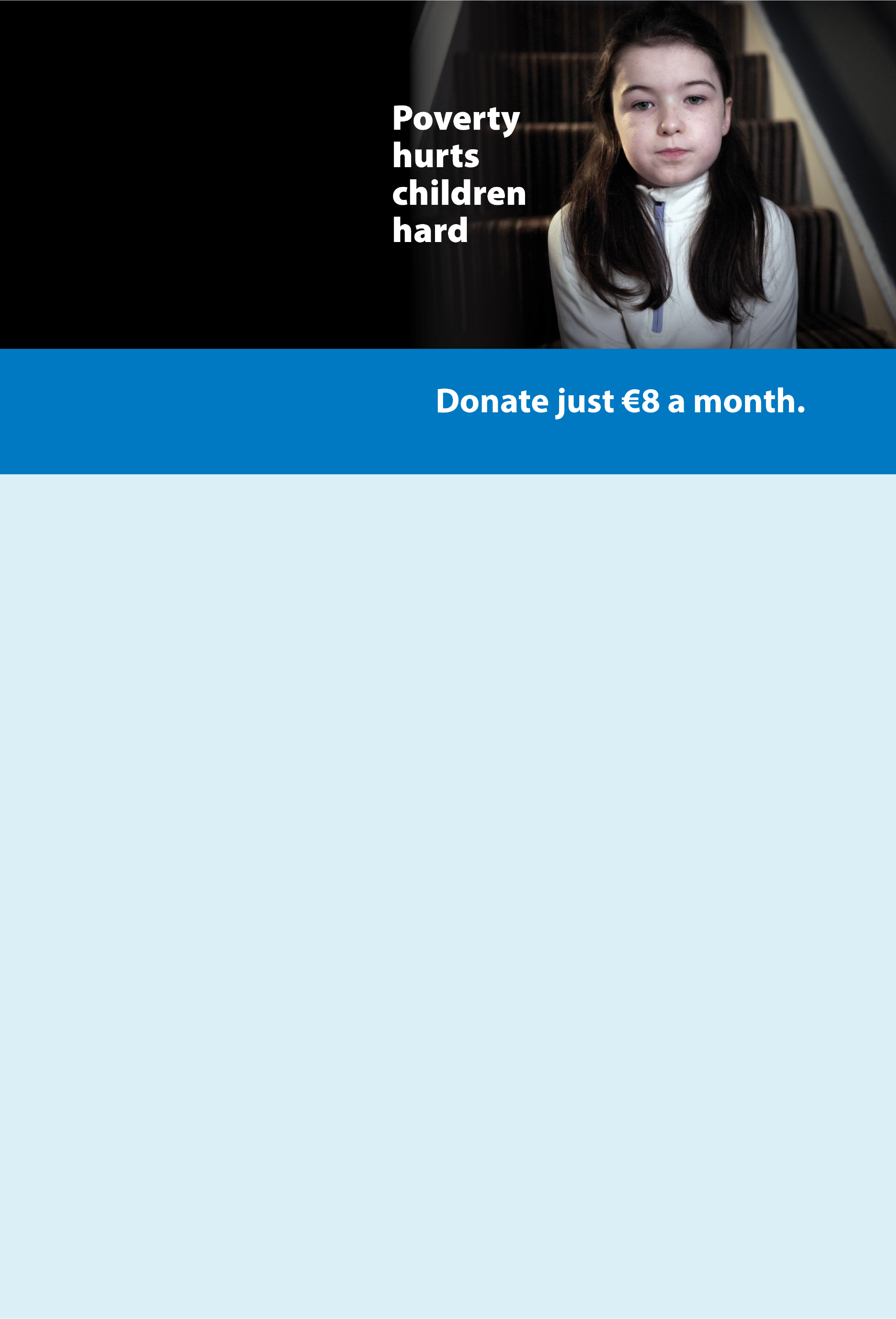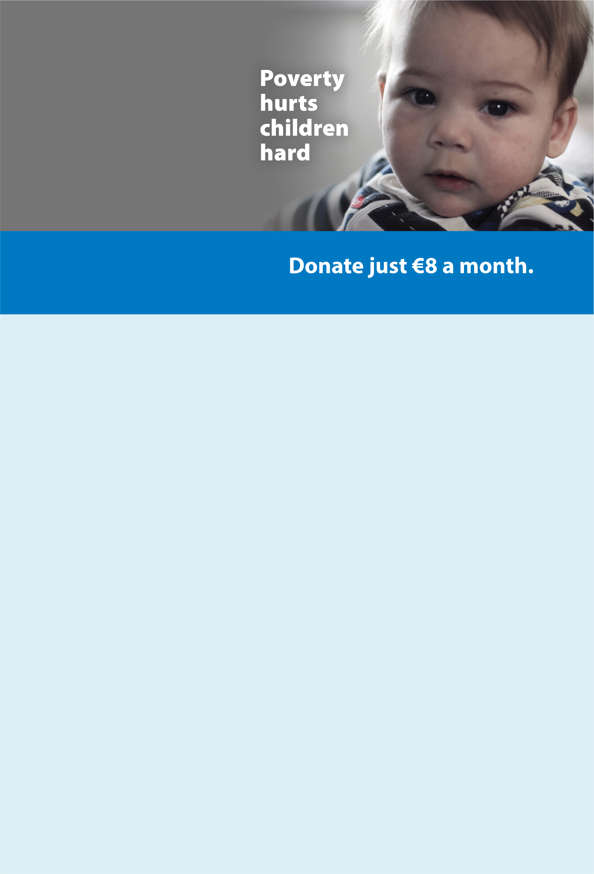 From €8 a month, you can help protect children from the lasting impact of poverty and support families through some of the hardest moments of their lives.
